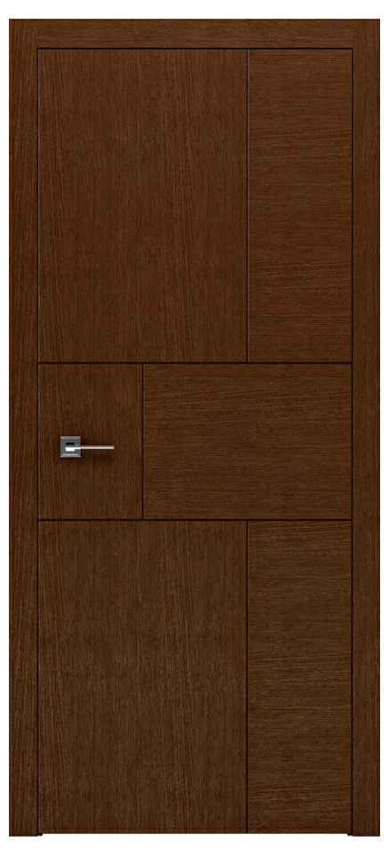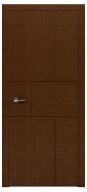 Глухі дверні полотна оздоблені натуральним шпоном, який демонструє природну красу деревини. Стриманий декор створений виключно завдяки вставкам із різним напрямком розташування волокон – горизонтальним і вертикальним. Завдяки дизайнерському задуму і відсутності інших декоративних елементів, лаконічність малюнка набуває посиленої виразності, підкреслює статусність і поважність загального стилістичного рішення інтер’єру.